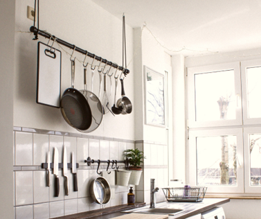 Pot racks, under-cabinet hooks and standalone shelves can all help you to organize your kitchen and free up cabinet space. They also are a great way to customize your kitchen to better fit your cooking needs. Try putting magnetic shelves on the sides of your fridge to store smaller, lighter items, like spices. Another way to save space with spice storage is by using a drawer spice rack. You can also purchase magnetic knife bars, to help reduce your cutlery clutter.